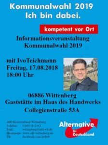 Der heutige Stammtisch widmet sich dem großen Thema der Kommunalwahl. Ivo Teichmann wird darüber informieren.