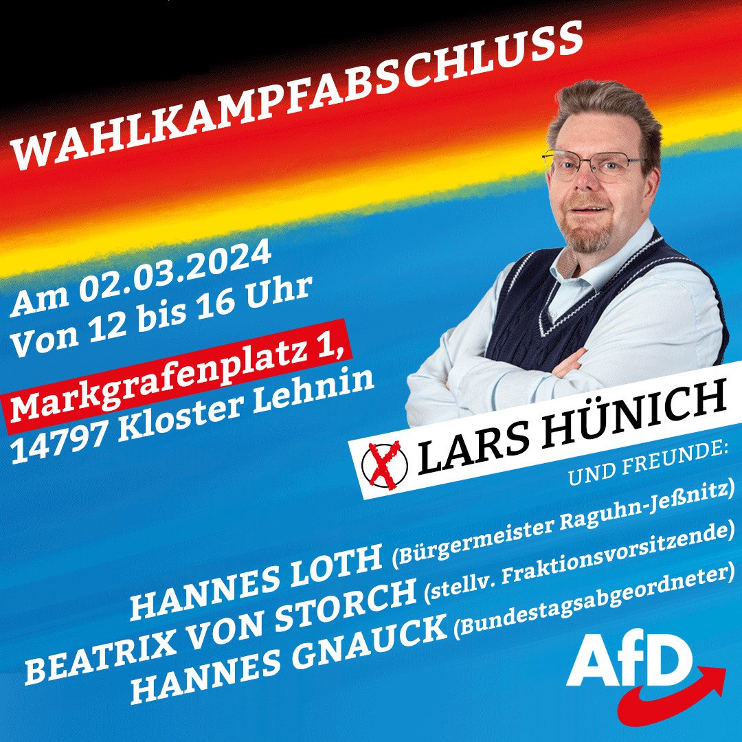 Wahlkampfabschluss Kloster Lehnin – Blick über die Landesgrenze Kalender Zum Kalender hinzufügen Zu Timely-Kalender hinzufügen Zu Google hinzufügen Zu Outlook hinzufügen Zu Apple-Kalender hinzufügen Einem anderen Kalender hinzufügen Als XML exportieren Wann: 2. März 2024 um 12:00 2024-03-02T12:00:00+01:00 2024-03-02T12:15:00+01:00 Wo: Kloster Lehnin Markgrafenpatz 1 14797 Kloster Lehnin